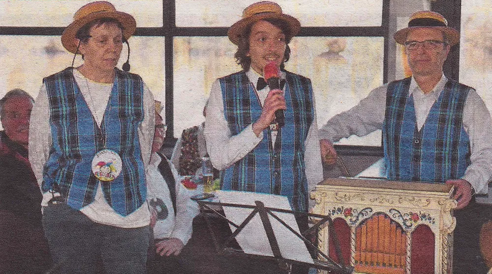Nicht fehlen durften auch die grandiosen Bänkelsänger aus der Winkeler Fastnachtsdynastie: Marion, Norbert und Patrick Halbritter sorgten mit der Drehorgel im Gepäck für Lachtränen mit ihren musikalischen Versen und natürlich durften sie nicht ohne das legendäre „Allez Hop!“ die Bühne verlassen, das die „Callas vun Winkel“ in ihrer unvergleichlichen Art für die Gäste sang.