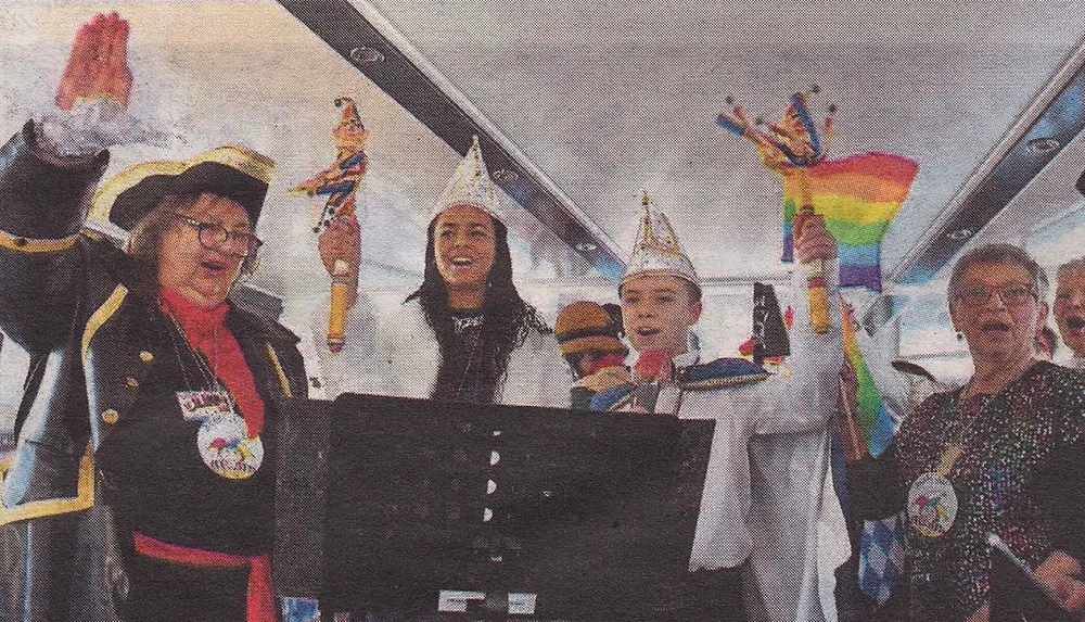 „Wir sind die allerscheenste Bobbe“ war auf der Robert Stolz zu hören. In der Winkeler Bucht liegend drangen von dem Ausflugsschiff „Helau-Rufe“, laute Musik und Lachen bis auf den Leinpfad und ließen einige Spaziergänger verwundert schmunzeln. Kein Wunder, wer würde schon denken, dass gerade eine richtige Fastnachtssitzung Fahrt aufgenommen hatte: Die „Ur-Bobbe" des Winkeler Carnevalvereines hatten hier zu einem kunterbunten Nachmittag mit Vorträgen, Gesangseinlagen und sogar Tanzeinlagen an Deck der Robert Stolz eingeladen. Zusammen mit ihrem ehemaligen Elferrat, der bei den Bobbe traditionell fast doppelt so viele Mitglieder umfasst, hatten die Närrinnen das Schiff närrisch geentert und luden zum zweiten Mal zu einer „Schiffsfastnacht'' ein. Gastgeberin Helga van de Lücht von der Schifffahrtslinie gehört nämlich auch zu den Bobbe und beim traditionellen „Schlappeabend" am Freitag nach Fastnacht haben sich die Schiffe auch schon als schwimmende Narhalla bewährt. „Ganz ohne Bobbe geht die Chose nit“, hieß das Motto der Gründerinnen der CVW-Damensitzung. 2004 hatten sie die Bobbesitzung ins Leben gerufen und 2019 das Zepter an eine jüngere Gruppe übergeben, die jetzt mit neuem Konzept die Damensitzung weiterführt. Doch natürlich können echte „Bobbe“ nicht ganz auf die Fastnacht verzichten und so hatte man die Idee vom karnevalistischen Nachmittag mit närrischem Programm auf der „Robert Stolz“. Spaß und Gaudi beim Kaffeeklatsch sollte im Mittelpunkt stehen, wie die erste Bobbe-Sitzungspräsidentin Emmi Müller-Jendreizeck und der CVWEhrenvorsitzende Dietmar Schneider erklärten.