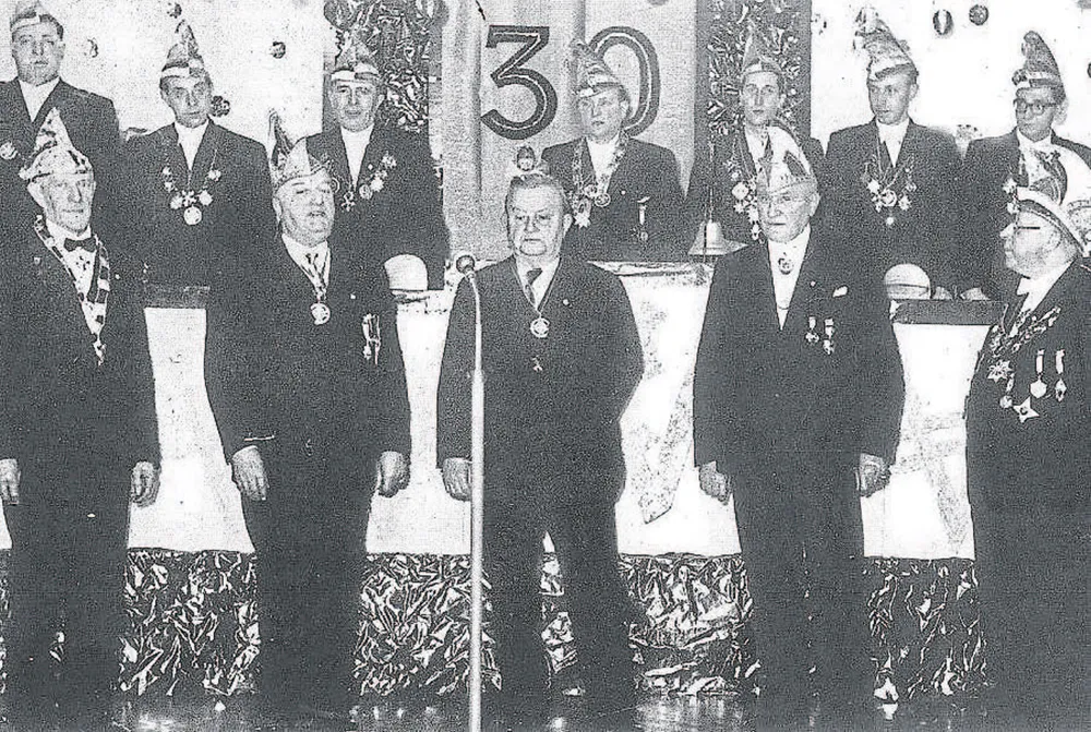 „Den Anfang in der großen Chronik machte „Schambes“ Berg als erster Sitzungspräsident und Vorsitzender vom CVW – damals gegründet als Rheinbank-Bund. Nicht nur bei der Gründung, sondern auch bei der Neugründung des Vereins nach dem Krieg war er dabei, und leitete somit die Geschicke des Vereins, aber insbesondere auch die Sitzungen von 1924 bis 1954“, erklärt auch der heutige Sitzungspräsident Patrick Halbritter bei seinem besonderen historischen Rückblick auf 100 Jahre Narretei beim CVW, der die Geschichte des Vereines anhand der Sitzungspräsidenten seit 1924 aufzeichnet: „Auf „Schambes“ Berg folgte Heinz Kloos als Sitzungspräsident, der mit insgesamt 21 Jahren der bisher längste Präsident seit der Neugründung nach dem Krieg war. Er, so habe ich mir sagen lassen, wäre eine absolute Koryphäe im Reimen und der Spontanität gewesen und hätte bisweilen noch oben im Elferrat mit Zettel und Stift auf die Beiträge reagiert, indem er spontan seine Abmoderation verfasst hat. Die Spontanität ging sogar so weit, dass zu seinen Zeiten wohl noch recht kurzfristig vor den Sitzungen gefragt wurde, wer eigentlich was macht. Sein Nachfolger war dann schon jemand, zu dem ich mich gar nicht groß umhören musste, weil ich ihn gut kenne und auch schon etliche Male in der Bütt’ erleben durfte: unser Ehren-Fassenachts-Urgestein Hermann Becker!“ Becker ist immer für den CVW aktiv und entwirft zum Beispiel die witzigen „Adel-Titel“ für die Prinzenpaare. Auf Herrmann Becker folgte dann ein weiterer großer Name in der Winkler Fassenacht: Jupp Issinger. „Mit ihm hat die Organisation der Sitzungen im Vorfeld stark zugenommen, weg vom „Wir haben nächste Woche Sitzung, wer macht was?“ aus Heinz Kloos’ Zeiten, hin in die Richtung dessen, was wir heute auch noch praktizieren. Auf der Bühne hingegen hat Jupp Issinger es dann aber gerne mal chaotischer dargestellt, als es tatsächlich war, gerne mal seine Zettel verschlampt, klasse improvisiert und so seinen eigenen – beim Winkler Publikum sehr geschätzten – Stil gehabt!“ Jupp Issingers Nachfolger war Karl-Heinz Führ, der gerade auch die Nachwuchstalente Patrick Halbritter und seine Schwester Tanja schon als Kleinkinder bei den Kappensitzungen in die Bütt geholt hatte. Zwölf Jahre war er im Amt und hat somit auch mehr als eine Dekade Winkler Fassenacht geprägt. Ebenso wie der Ehrenvorsitzende Dietmar Schneider, dessen „zweifelsfrei großartige Präsidentschaft stets im Schatten seiner unglaublichen 24-jährigen Amtszeit als Vorsitzender des CVW steht.“
